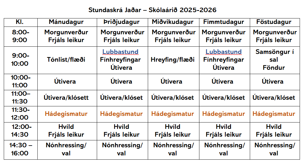Stundaskrá Jaðar