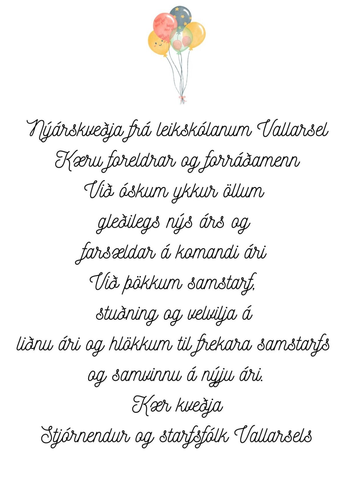 Nýárskveðja frá stjórnendum og starfsfólki Vallarsels
